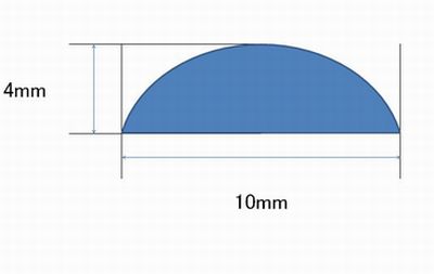 底辺10×高さ4 (mm) の半月型の芯材です。