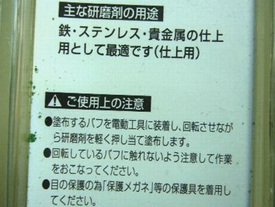バフやグラインダーのフェルトにつけて使用する研磨材です。